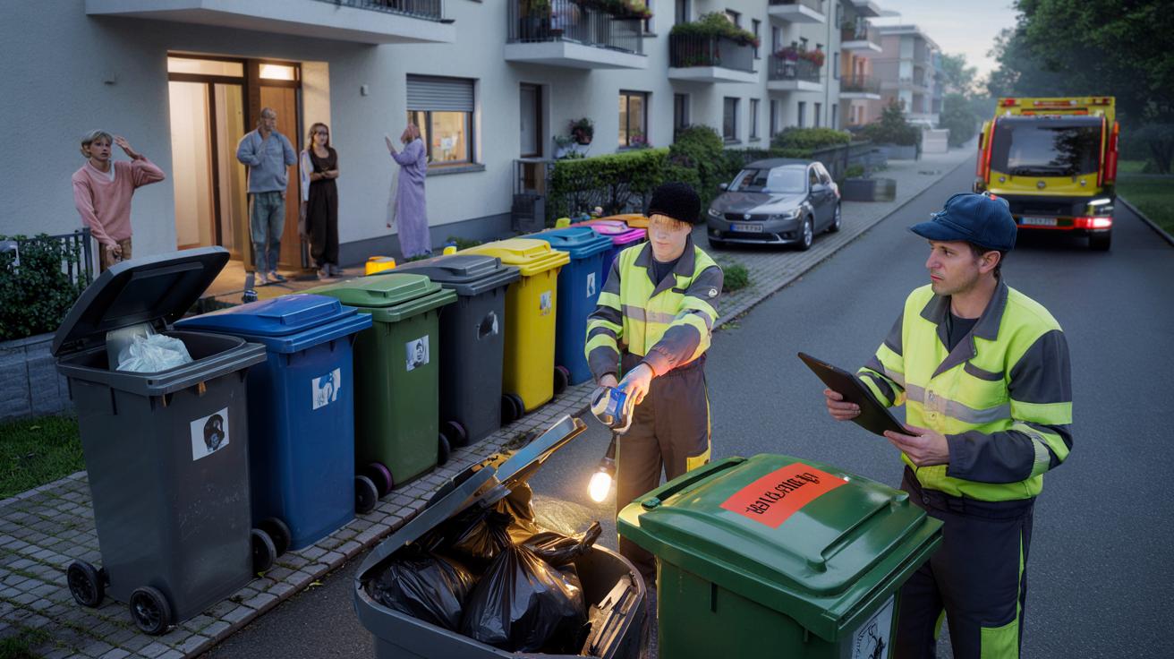 Kein Lärm von rangierenden Müllwagen, kein hastiges Rumpeln der Tonnen über den Asphalt. Stattdessen gehen zwei Mitarbeiter langsam die Straße entlang, heben jeden Deckel an, leuchten kurz hinein, schauen sich an – und lassen manche Tonne einfach stehen. Die Anwohner spähen hinter den Gardinen hervor, einige treten irritiert auf den Bürgersteig. „Warum wurde meine Tonne nicht geleert?“, ruft eine Frau im Bademantel. Der Mitarbeiter zeigt ruhig auf eine Plastiktüte im Papiermüll. Die Antwort passt vielen nicht. Aber sie ist ziemlich eindeutig.