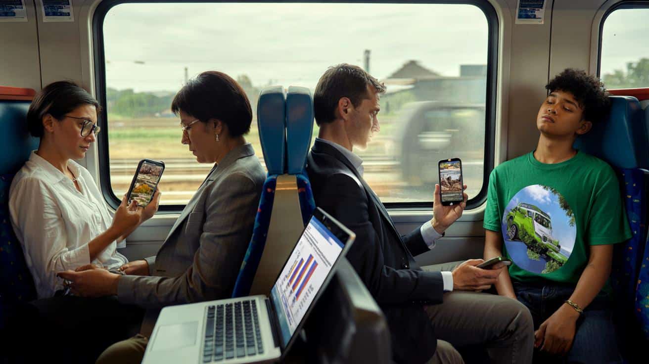 An diesem grauen Dienstagmorgen klebt auf der Scheibe der Regionalbahn ein Aufkleber: „Klimaschutz – jetzt oder nie“. Drinnen, zwischen Thermobecher und Diensthandy, wischt eine Frau durch ihren Newsfeed. Flüchtige Schlagzeilen: Hitzerekorde, Dürren, Proteste, neue Klimaziele. Alle paar Sekunden ein neuer Alarm, und doch wirkt sie fast gelangweilt. Der Mann ihr gegenüber klappt den Laptop auf, PowerPoint, Quartalszahlen, keine Zeit für Weltuntergang. Ein Teenager in der Ecke trägt ein T-Shirt mit grüner Erde, spielt aber mit lauter Musik TikTok-Videos ab, in denen SUVs durch Stadtstraßen rollen. Kurz schauen sie sich an, dann wieder auf ihre Displays. Kein Streit, kein Gespräch, nur ein stummes Einverständnis: Irgendwie weiter so. Irgendwann, bald, später.
