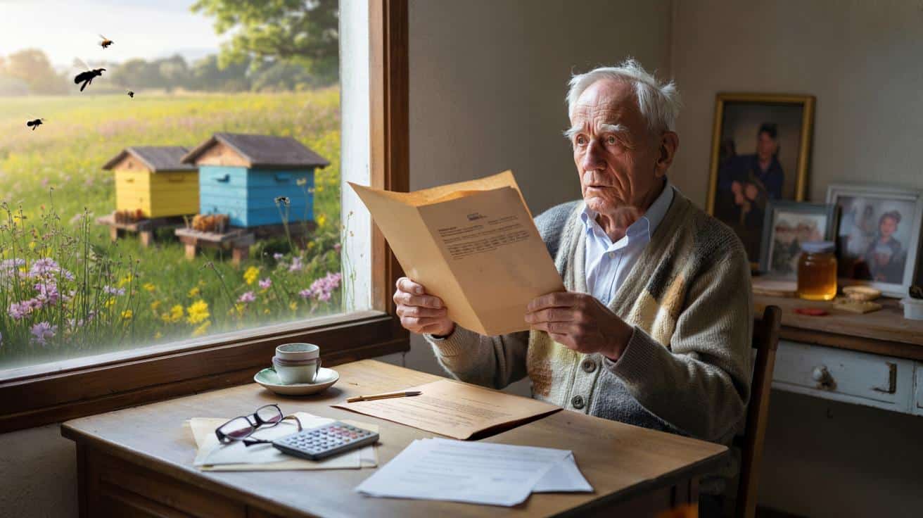 Jetzt liegt ein Brief vom Finanzamt neben seiner Kaffeetasse. Landwirtschaftssteuer. Für ein Land, von dem er keinen Cent sieht. Der Imker verkauft Honig, die Bienen fliegen, die Felder blühen – und der alte Mann soll zahlen.