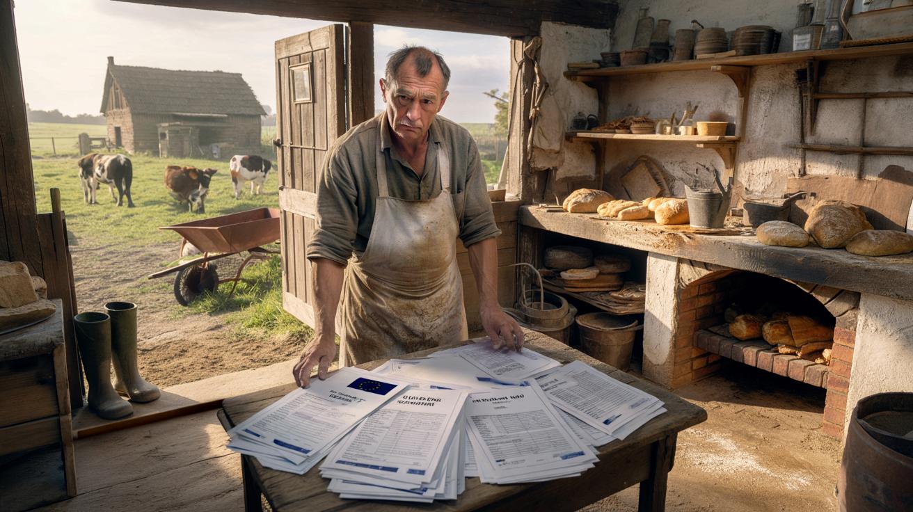„Die Verordnung an sich ist nicht unser Feind“, sagt der Landwirt, der seine Hofbäckerei schließen soll. „Was uns fertig macht, ist, dass sie so tut, als hätten wir hier dieselben Möglichkeiten wie ein Konzern mit eigener Rechtsabteilung. Ich backe Brot, ich jongliere nicht mit Millionen.“