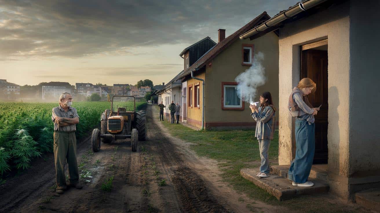 Einer zündet sich etwas an, der süßlich-schwere Geruch legt sich über die nassen Felder. Hinter ihnen tuckert ein Traktor vorbei, der Fahrer schaut kurz rüber, schüttelt den Kopf und fährt weiter. Am anderen Ende der Straße tritt eine Mutter vor die Haustür, ruft ihren Sohn rein, als hätte sich die Luft über Nacht verändert. Seit die neue Cannabis-Politik beschlossen wurde, wirkt dieses Dorf, als hätte jemand eine unsichtbare Linie mitten hindurch gezogen. Zwischen „legal“, „illegal“, „egal“ klaffen plötzlich Lücken, in denen sich Misstrauen, Angst und stille Wut ausbreiten. Und niemand weiß so richtig, wie man sie wieder schließt.