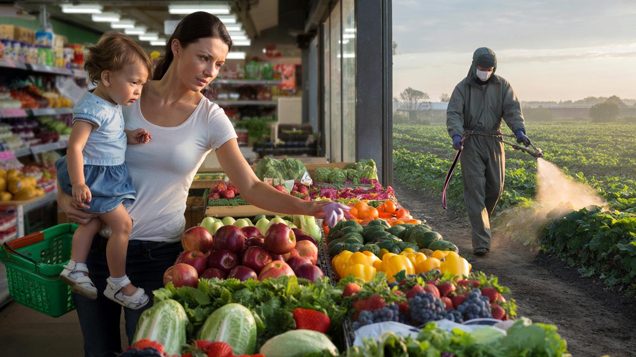 Neben ihr stapeln sich glänzende Paprika, makellose Äpfel, Kopfsalat fast ohne Fleck. Eine Mutter erklärt ihrem Kind, dass Obst und Gemüse gesund machen, „für starke Knochen und ein gutes Immunsystem“. Niemand sagt: In manchen dieser Früchte steckt mehr Chemie, als einem lieb sein kann. Niemand sieht den Mann, der dieselben Erdbeeren vor ein paar Tagen im Morgengrauen gespritzt hat, mit brennenden Augen unterm Schutzanzug. Und sicher sitzt gerade irgendwo eine Ministerin in einem Konferenzraum und blättert durch einen Bericht, der lieber in der Schublade bleiben soll. Zwischen Kasse, Kanzleramt und Kartoffelacker klafft ein Spalt, in den Vertrauen, Gesundheit und Existenzen zu rutschen drohen. Irgendwo dazwischen liegen unsere Teller.