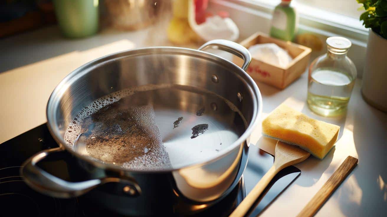 | Use heat plus simple ingredients | Simmer water with baking soda or vinegar to loosen burnt layers | Less scrubbing, less frustration, more effective cleaning |