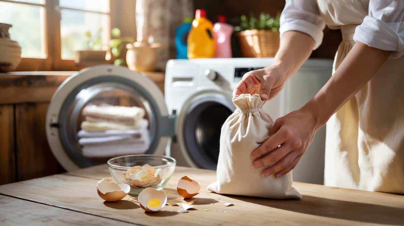 | Sanfte Aufhellung | Eierschalen im Baumwollsäckchen zusammen mit weißer Wäsche waschen | Schonendere Alternative zu Chlorbleiche für empfindliche Haut und Textilien |