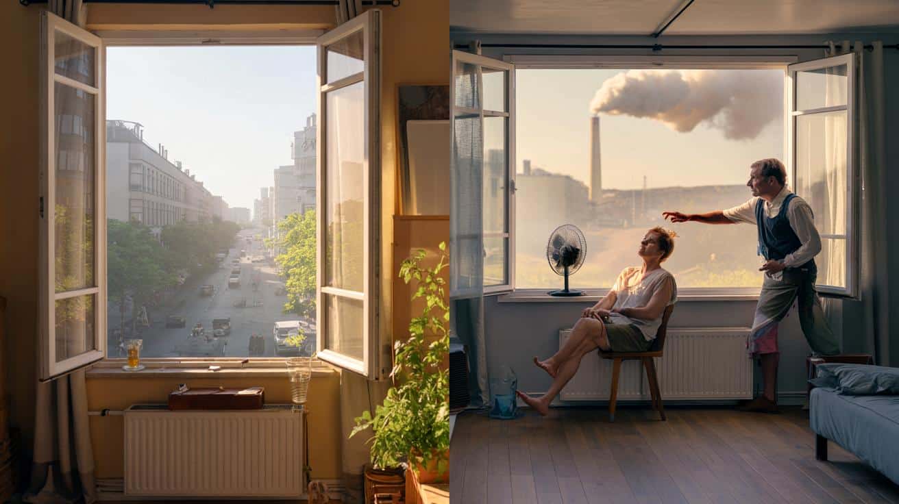 The fan hums in the corner, the street is shimmering in the 34-degree heat, and the air in the living room feels like lukewarm soup. You stand in front of the window with your hand on the handle, torn. Open wide and hope for a breeze? Or stay locked away in the half-dark, trusting the air conditioner to do its magic while the electricity meter spins like crazy?