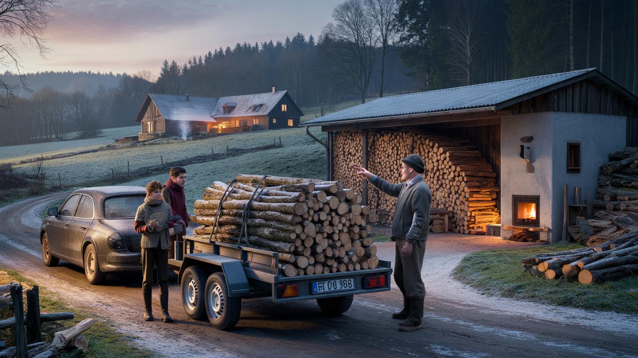 Take Lower Bavaria as an example. Around Freyung-Grafenau, families organize a trailer, drive to the forest cooperative and load freshly cut beech logs for 70–80 euros per cubic meter. A Munich family pays up to 140 euros for the same amount, delivered and stacked. The distance between those two realities is barely two hours on the motorway.