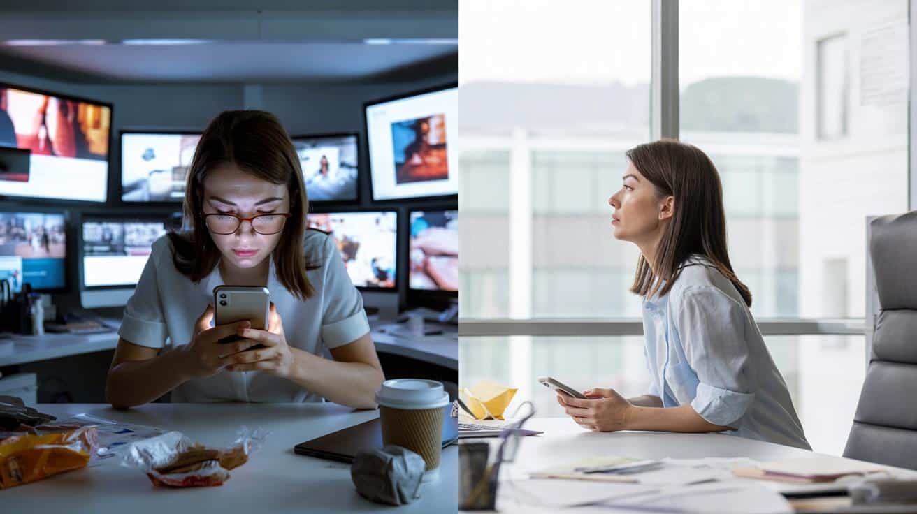 The office is silent except for the low buzz of computers and the occasional sigh. You stare at your screen, brain foggy, cursor blinking like it’s mocking you. “I need a break,” you think, reaching for your phone almost on autopilot. Five minutes of scrolling, just to breathe a little. Ten minutes later, you put the phone down, rub your eyes… and somehow you feel even heavier than before.