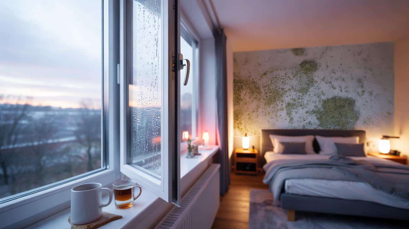 Most people underestimate how much moisture everyday life generates. One shower can release around a liter into the air. Cooking pasta, boiling potatoes, even that beloved humidifier in the bedroom – all of it stays trapped if the airing is timid. Then January arrives with long nights, little sun, and tightly closed façades. Perfect storm.