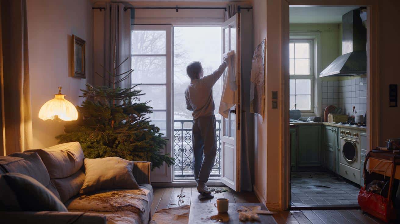 You put the last ornament back in its box and suddenly notice: the windows are grey, the sofa smells faintly of melted cheese, and the plants look like they’ve survived a small apocalypse.