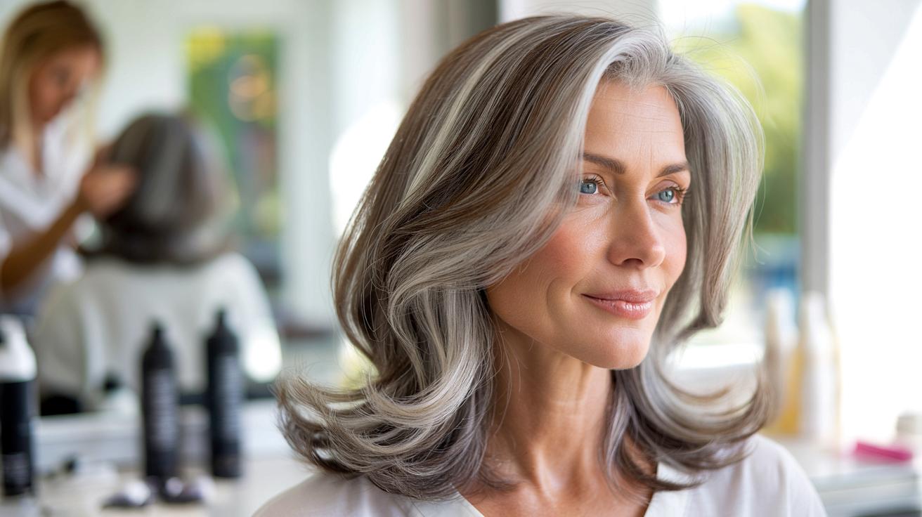 - Wähle einen Salon, der explizit mit „Gray Blending“, „Balayage“ oder „natürlicher Farbkorrektur“ wirbt, nicht nur mit Standard-Färben.
