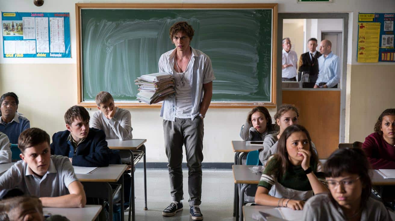 Vorne an der Tafel steht ein junger Mann mit zerzausten Haaren, Sneakers, Hemd aus der Hose gerutscht. Jonas H., 29, Geschichtslehrer an einem ganz normalen Gymnasium irgendwo in Deutschland. Er legt das Korrekturraster aus der Hand, atmet hörbar ein und sagt den Satz, der später das ganze Kollegium spalten wird: „Ab heute bekommt ihr von mir keine Noten mehr.“