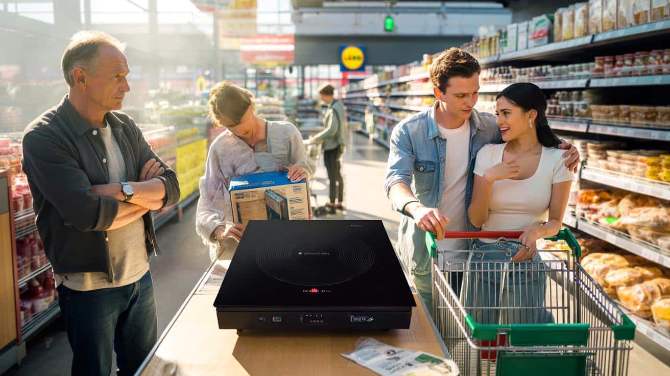 Schwarze, matte Oberfläche, das Wort „Induktion“ prangt darauf, daneben das knallige Lidl-Logo. Hinter ihr murmelt ein älterer Mann: „Was die Leute heute alles brauchen zum Kochen … früher hat ein Herd gereicht.“ Zwei Kassen weiter ruft ein junger Typ seiner Freundin zu: „Glaub mir, das Teil ist schneller als unser Glaskeramikdinosaurier!“