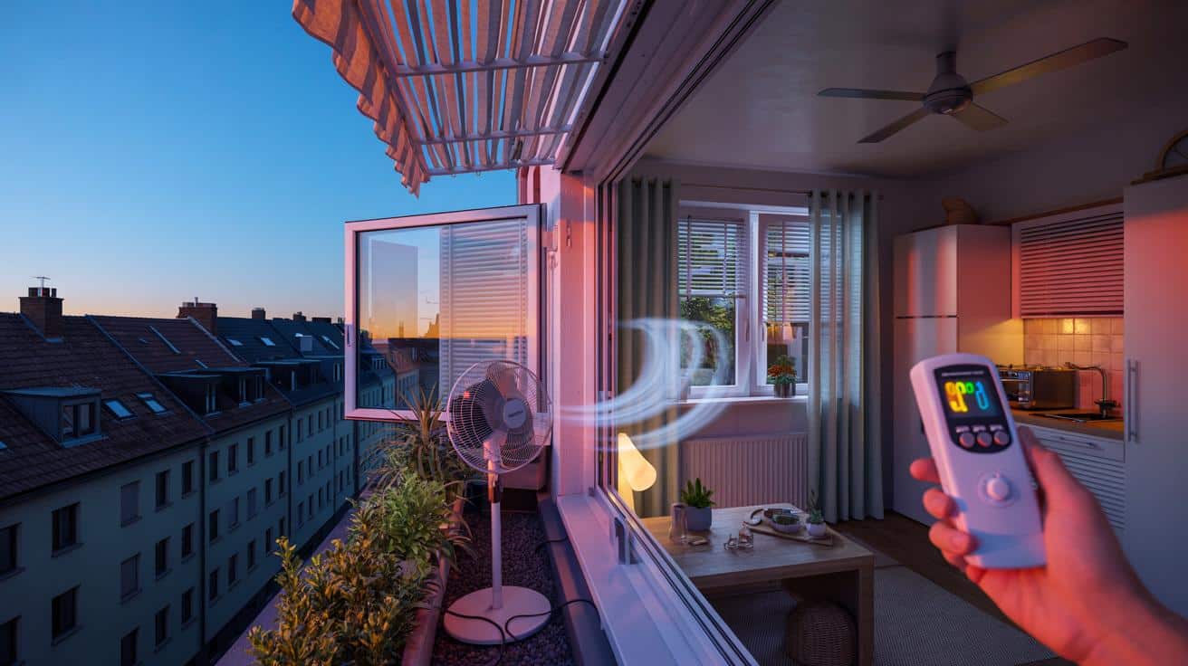 Bei Lärm oder Sicherheitssorgen in der Nacht bieten Fensterlüfter mit Insektenschutz und Sperrbügeln einen Kompromiss. Einfache mobile Klimageräte arbeiten oft ineffizient, wenn der Abluftschlauch die Nachbarluft wieder ansaugt. Besser: Doppelschlauchgeräte oder eine klar definierte Abluftführung. Wer eine reversible Wärmepumpe besitzt, kühlt kurz am frühen Abend, um Oberflächen zu „brechen“, danach übernimmt die Nachtspülung.