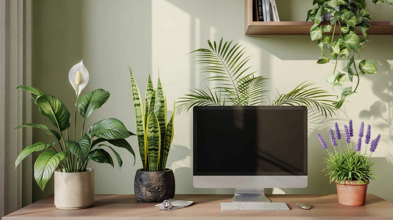 Die schnellste Methode: Baue dir eine “Grünlinie” im Blickfeld, nicht direkt vor die Nase, sondern leicht seitlich. Zwei Pflanzen auf dem Schreibtischrand, eine höhere hinter dem Bildschirm, eine Hängepflanze in der Peripherie. So streift dein Blick das Grün immer wieder, ohne dass du es suchst. Wähle fünf Arten, die zusammen ein ruhiges Bild geben: Friedenslilie, Bogenhanf, Efeutute, Areca-Palme, Lavendel im Topf. Gieße nach Gewicht, nicht nach Kalender: Topf anheben, wenn er leicht ist, ist es Zeit. Und einmal pro Woche Blätter abstauben – das ist fast schon Meditation mit Tuch.