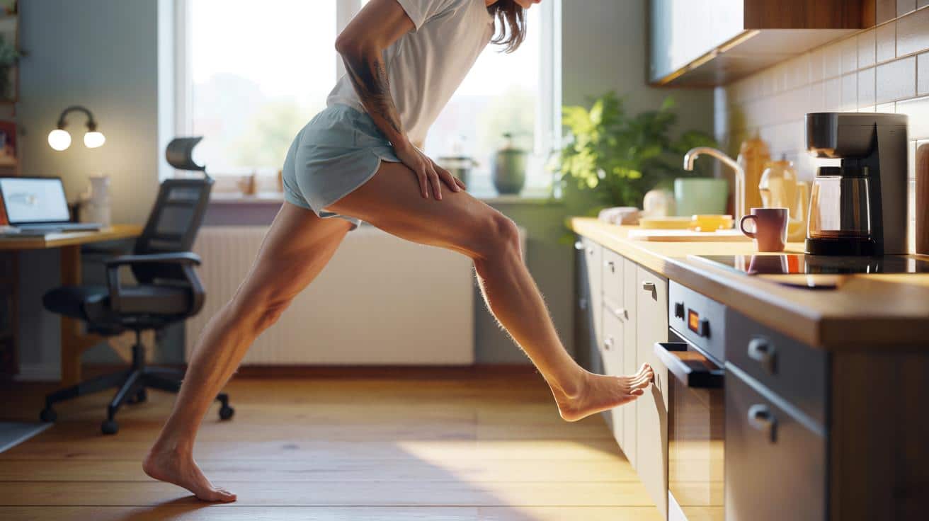 Fünf Minuten klingen lächerlich wenig. Gerade deshalb funktionieren sie. Sie sind so klein, dass dein innerer Schweinehund kurz wegguckt. Die Idee: Ein Mini-Ritual, das Beine, Hüften und Füße durchbewegt, ohne dass du deine Wohnung in ein Yoga-Studio verwandeln musst. Beispiel: Du stellst dich morgens während des Kaffeekochens an die Arbeitsplatte, ein Bein leicht nach hinten, Ferse zum Boden – 30 Sekunden, dann Beinwechsel. Anschließend ein paar langsame Kniebeugen, so tief wie angenehm. Kein Heldentum, kein Schmerz-Face. Nur einmal kurz „Hallo“ sagen zu Muskeln und Gelenken, bevor der Tag sie wieder einsperrt.