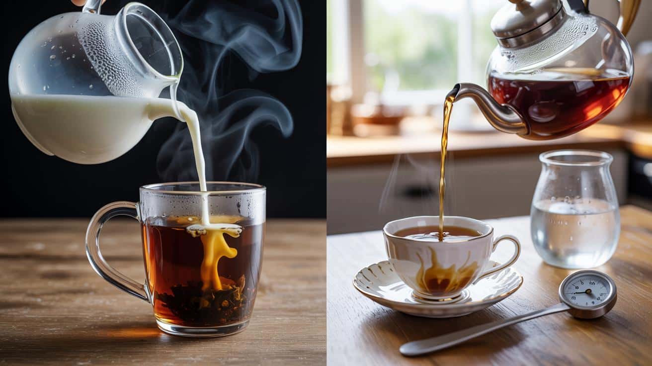 Ein kleiner Küchentest zeigt es gnadenlos: Zwei identische Tees, beide aus dem gleichen Wasser. In die erste Tasse wandert ein kräftiger Schluck Milch direkt aus dem Kühlschrank, in die zweite wird der Tee erst auf etwa 65 Grad abgekühlt. In Tasse eins bilden sich binnen einer halben Minute kleine Flocken, die Oberfläche bekommt einen Film, der Duft verliert an Frische. In Tasse zwei zieht die Milch sanft ein, der Farbton wird gleichmäßig, der Geschmack bleibt klar. Kein Labor nötig, nur ein Thermometer und Aufmerksamkeit.