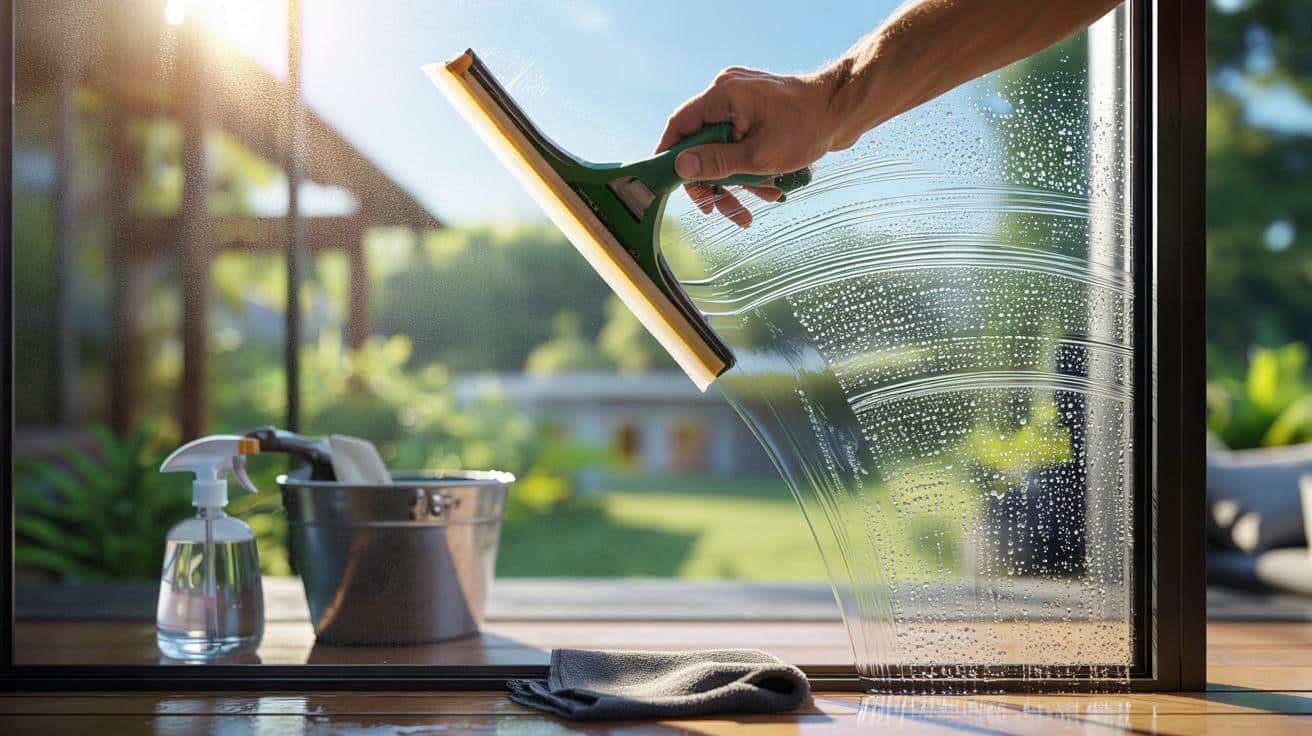Start oben links, dann im S‑Muster nach unten. Jede Bahn etwas überlappen. Druck gleichmäßig halten, nicht drücken, sondern führen. Nach jeder Bahn die Gummilippe mit einem trockenen Tuch abstreifen. Zum Schluss die Kanten ringsum mit Mikrofasern trocknen. Rahmen zuletzt, damit kein Schmutz zurück auf die Scheibe gelangt.