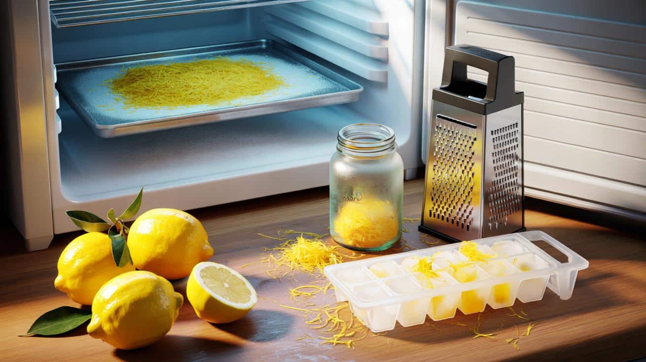 Im Kühlschrank trocknet abgeriebene Schale schnell aus. Im Eisfach bleibt sie saftig, riecht intensiver und verteilt sich besser im Teig, im Risotto oder in der Marinade. Für Haushalte, die nicht täglich backen oder mixen, ist das ein kleiner Organisationsgewinn mit spürbarem Effekt auf Geschmack und Abfallmenge.