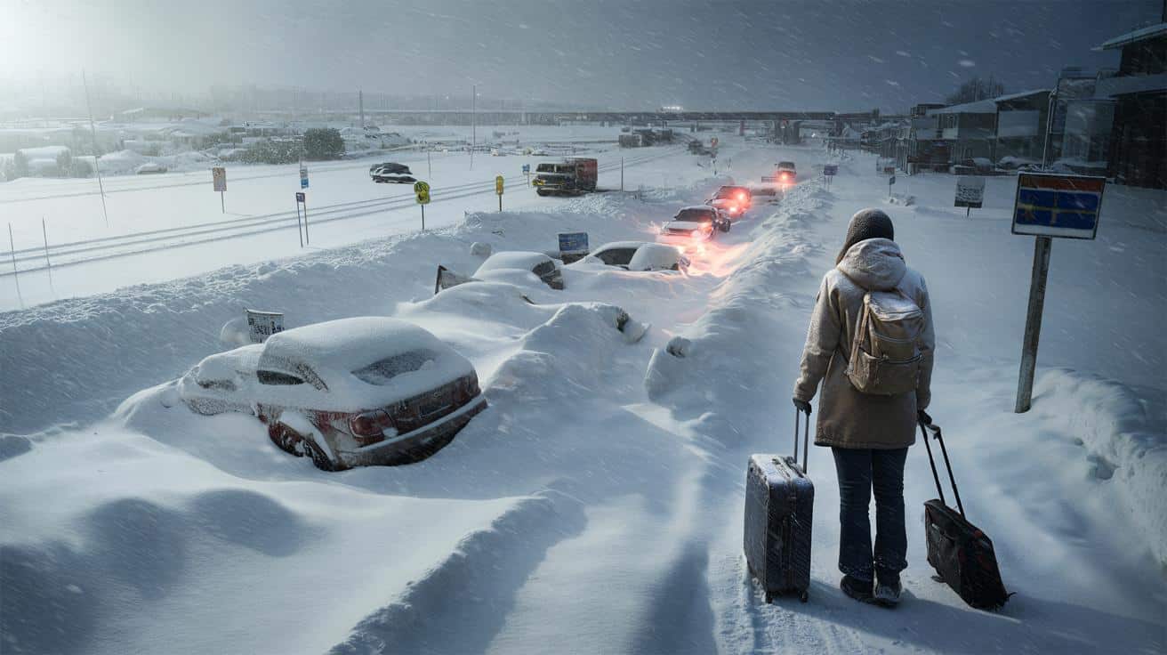 The first snowflakes started as a quiet glitter in the streetlights, the kind of gentle winter postcard you’d normally snap for Instagram and forget. By dawn, the scene had turned brutal. Plow trucks were half-buried, cars looked like soft, white boulders, and the wind was whipping so fiercely that people opening their front doors had to lean into the storm like climbers on a ridge. The local radio station spoke in the tense voice usually reserved for wildfires or floods: “Bis zu 183 cm Neuschnee möglich, Verkehrswege gefährdet, Reisen nur im Notfall.” Flights blinked from “delayed” to “canceled” in red rows on smartphone screens. Train apps crashed under the rush. One woman in a faded parka stood on her frozen driveway, suitcase in hand, staring at the white wall where the road used to be.