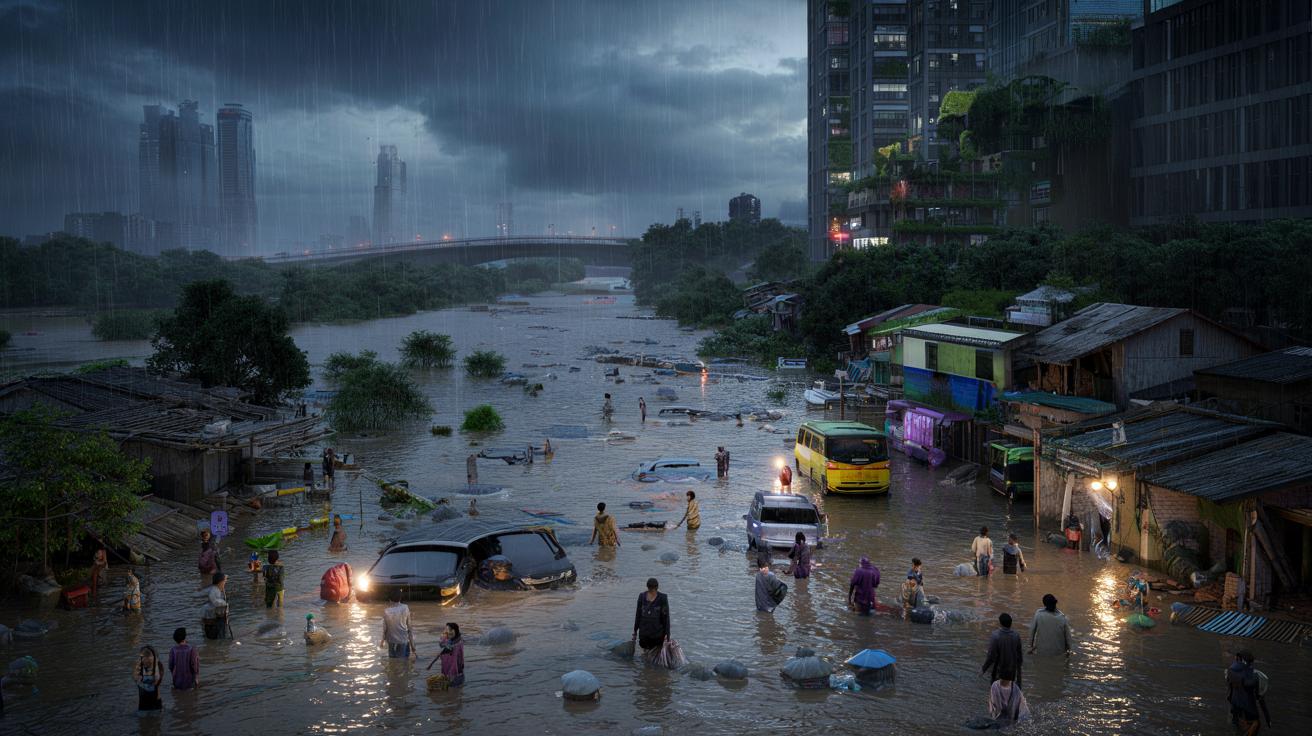 As intense rainfall rises, these weaknesses turn into deadly hazards. Flash floods can sweep through unplanned suburbs, cutting people off from markets, hospitals and schools for days or weeks.