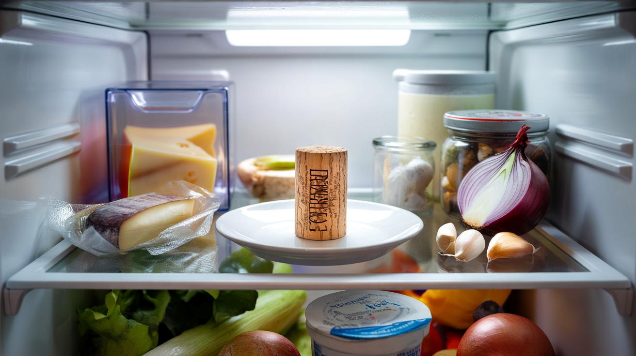 You take a natural wine cork – not plastic, not silicone – and place it on a small plate in your fridge, ideally somewhere in the middle shelf where the air circulates most.