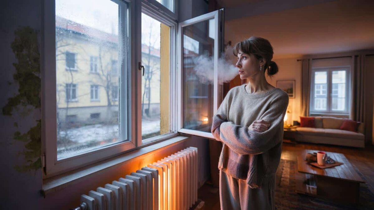 Drinnen, im dritten Stock eines Altbaus, reißt eine Frau das Fenster im Wohnzimmer weit auf. Die Heizung unter dem Fenster