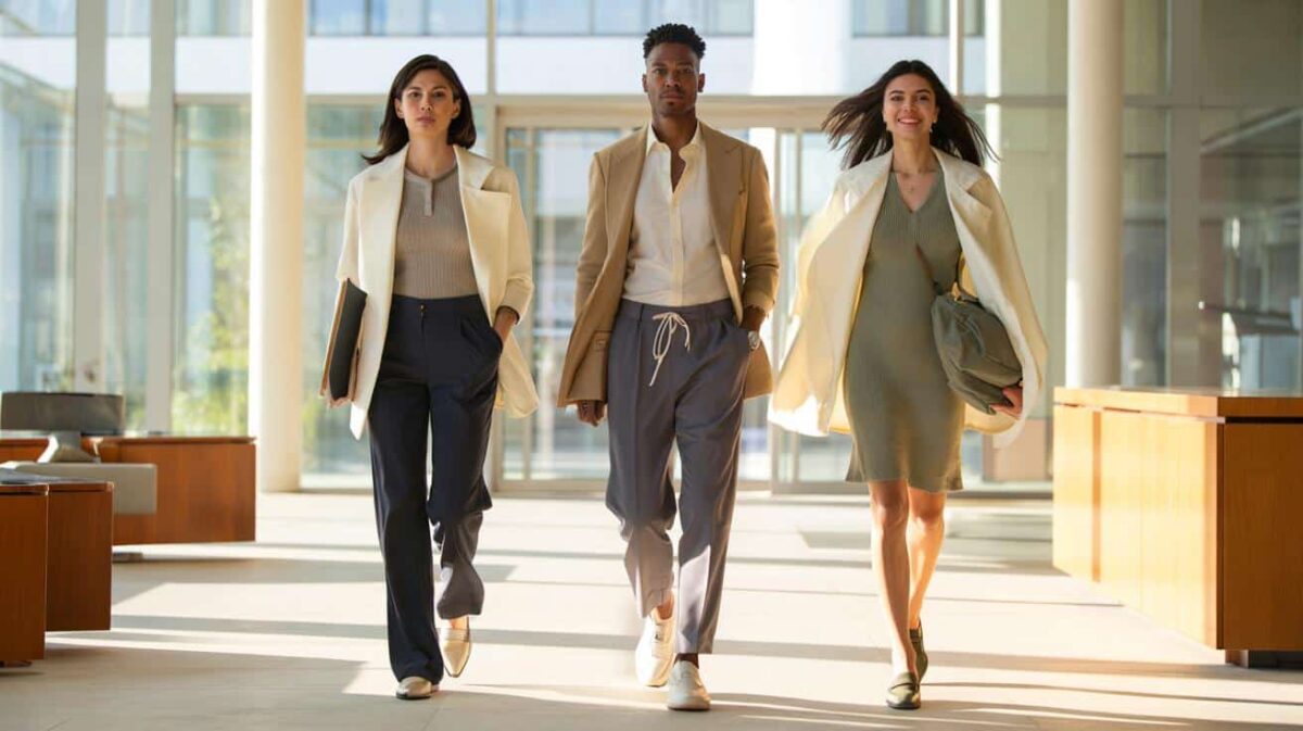 Doch zurück im Büro suchen wir nach einem Look, der Kompetenz ausstrahlt und sich trotzdem anfühlt wie Samstagmorgen. Montagmorgen, S‑Bahn