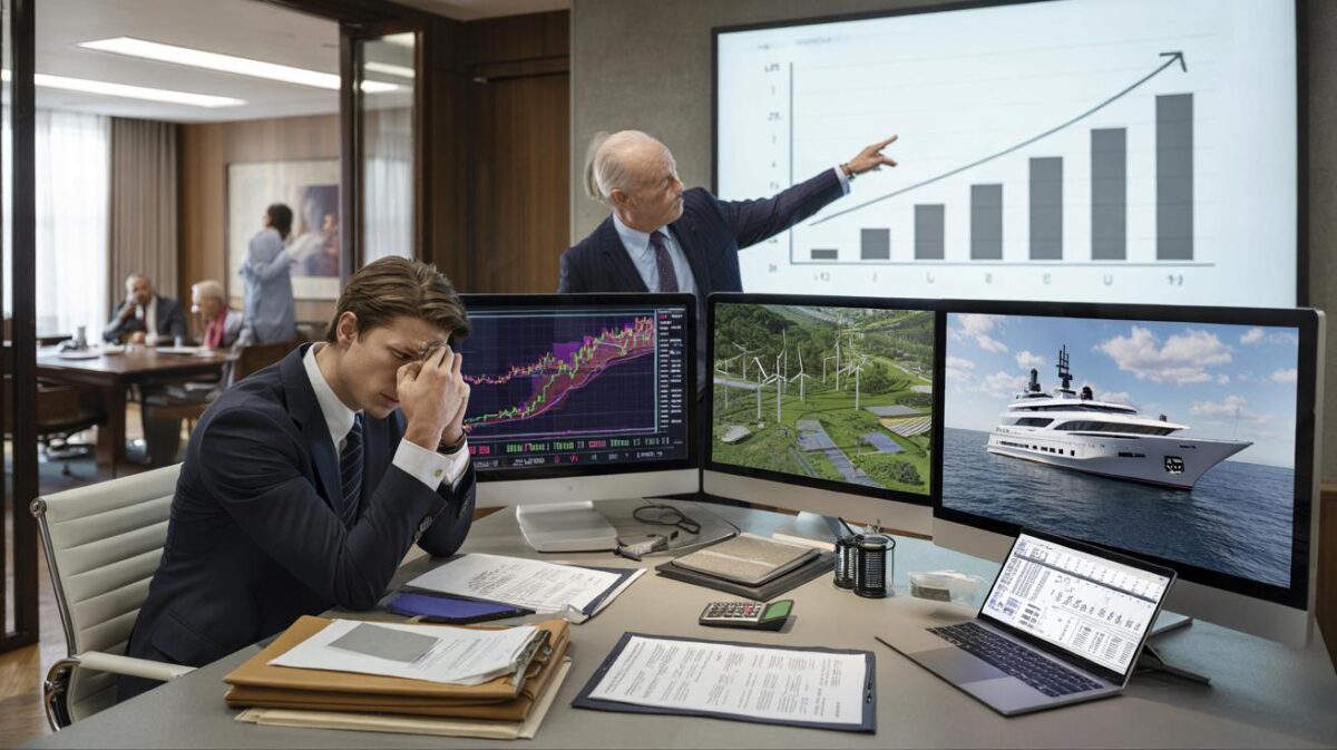 Vor ihm drei Bildschirme: Auf einem blinkt der Bitcoin-Kurs, auf dem anderen ein Nachhaltigkeitsfonds, auf dem dritten die Website einer […]